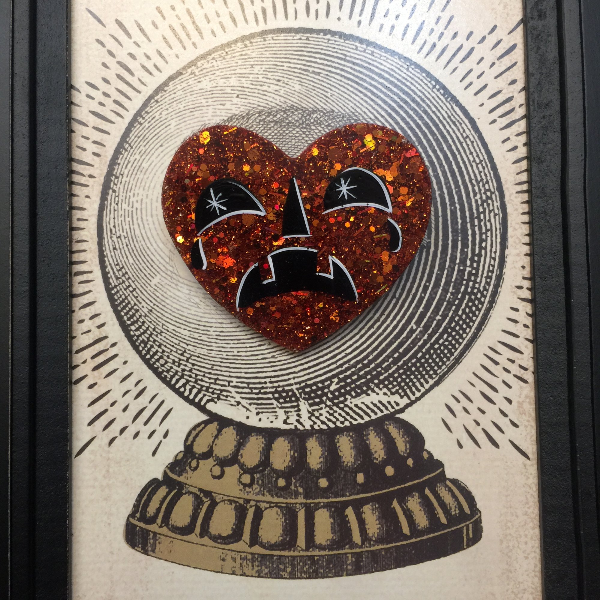 Thick Glitter Orange Heart with Hand Painted Face all 100% Hand Made 🖤🎃🧡 Brooch Back Measures 2.25" wide 2" tall