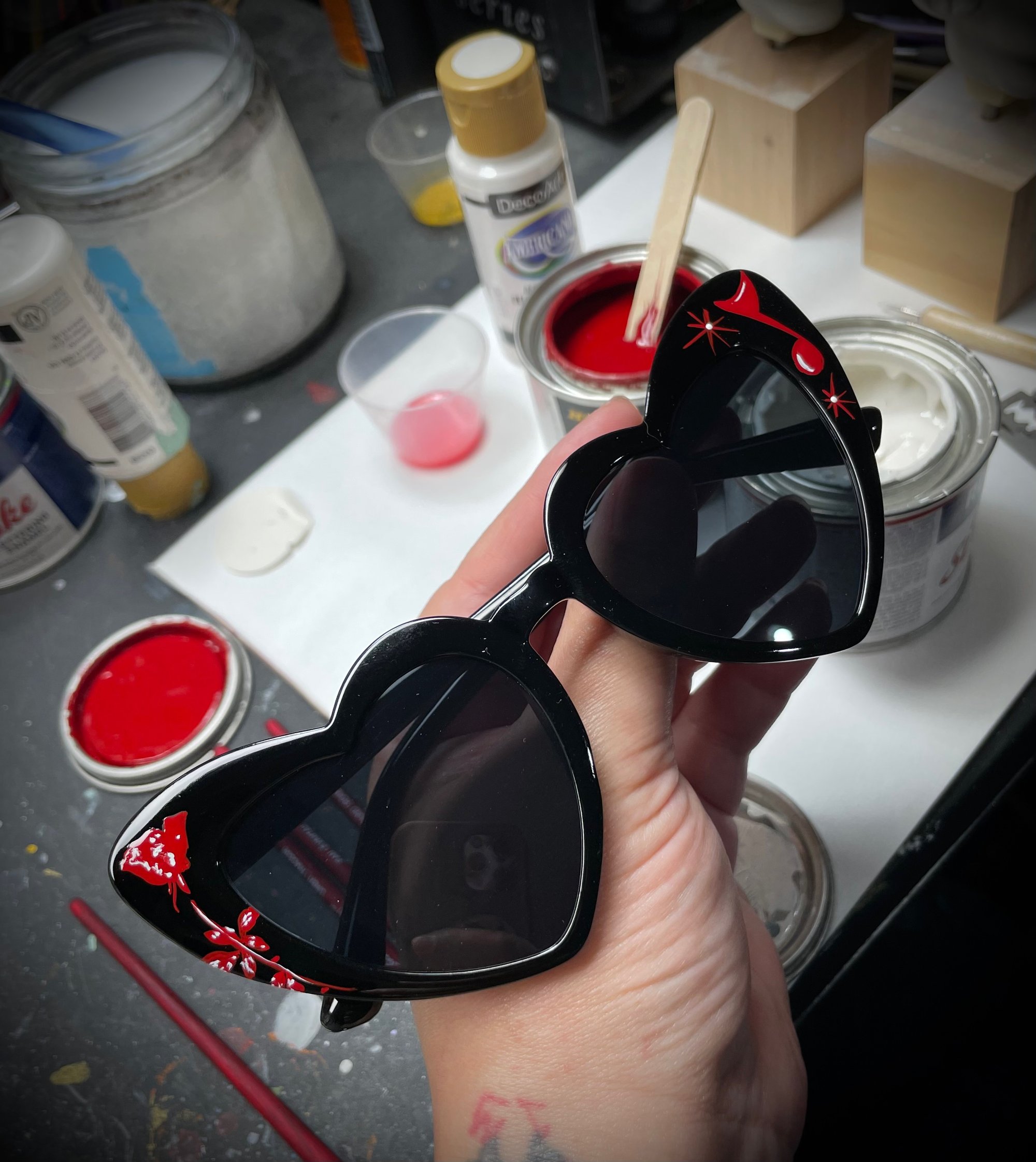 These Glasses are Hand Painted using Enamel Paint 🖤😎. If you want a different color please leave that information on the notes section before check out. Color options available in the next pic.