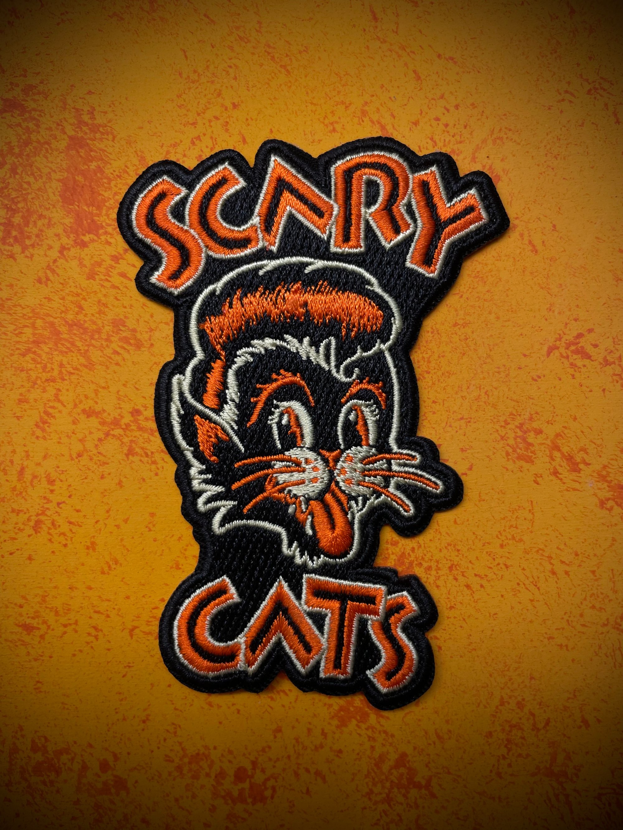 Scary Cats Iron on Patch Measures 4" tall 2.75" wide.