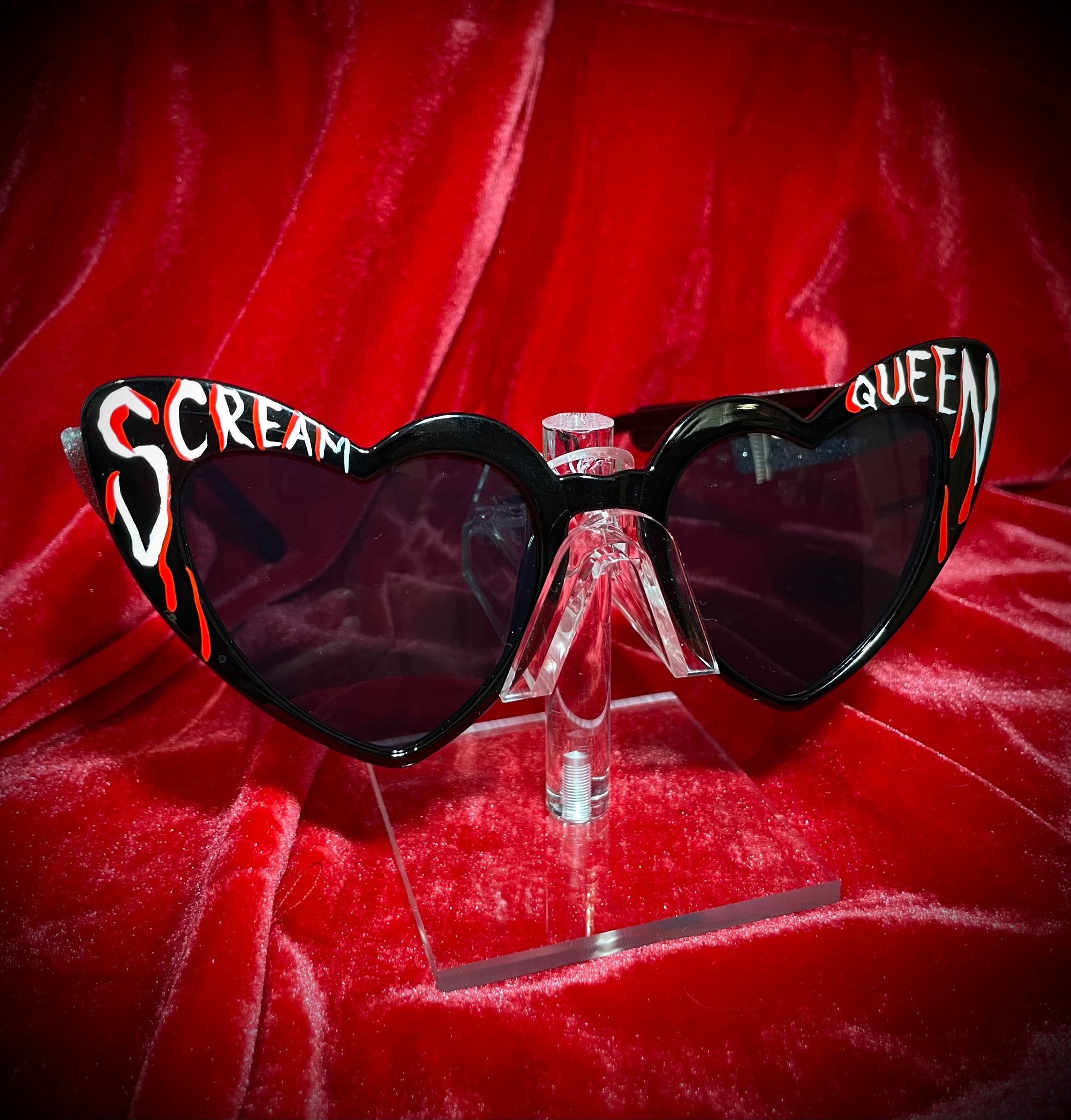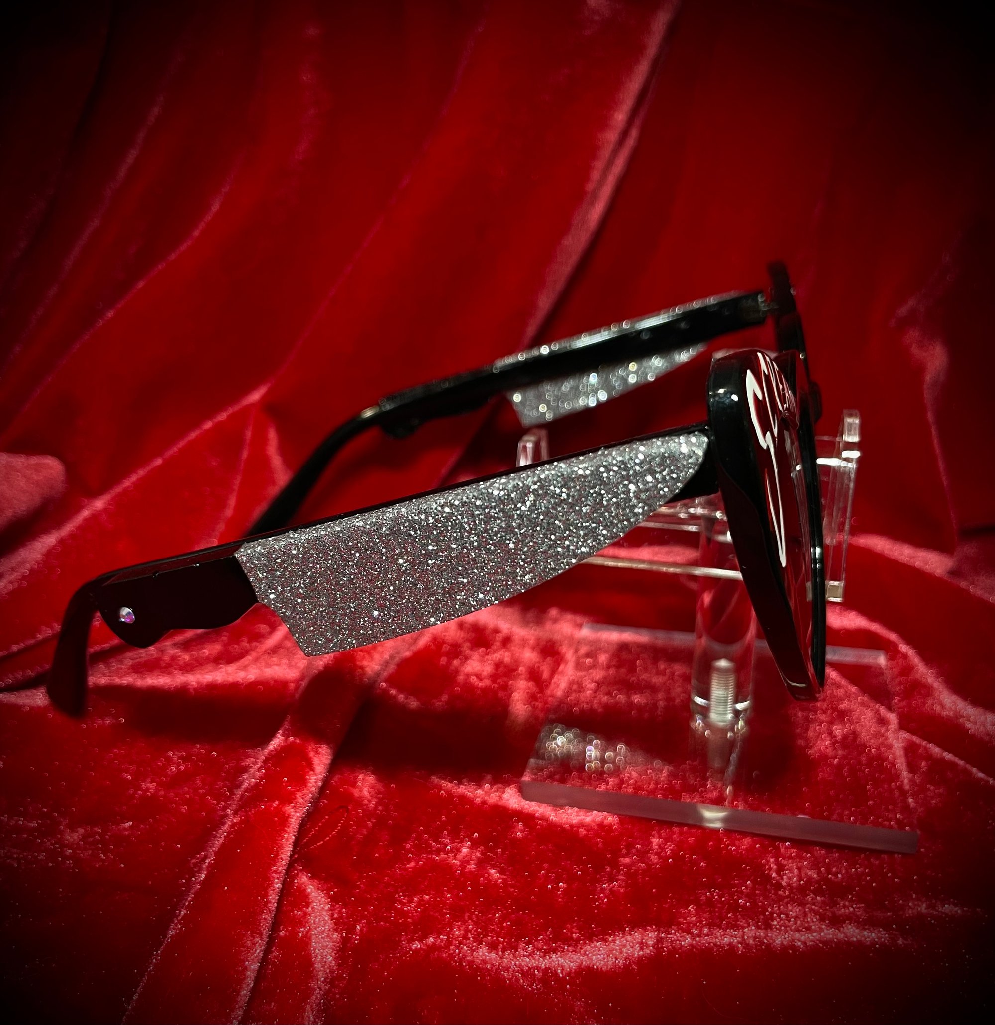 These Glasses are Hand Painted using Enamel Paint. Each Piece on the Side of the Lenses are Hand Made with Resin and Glued. Or some come with Metal Embellishments. Each Piece is Unique 🖤😎.