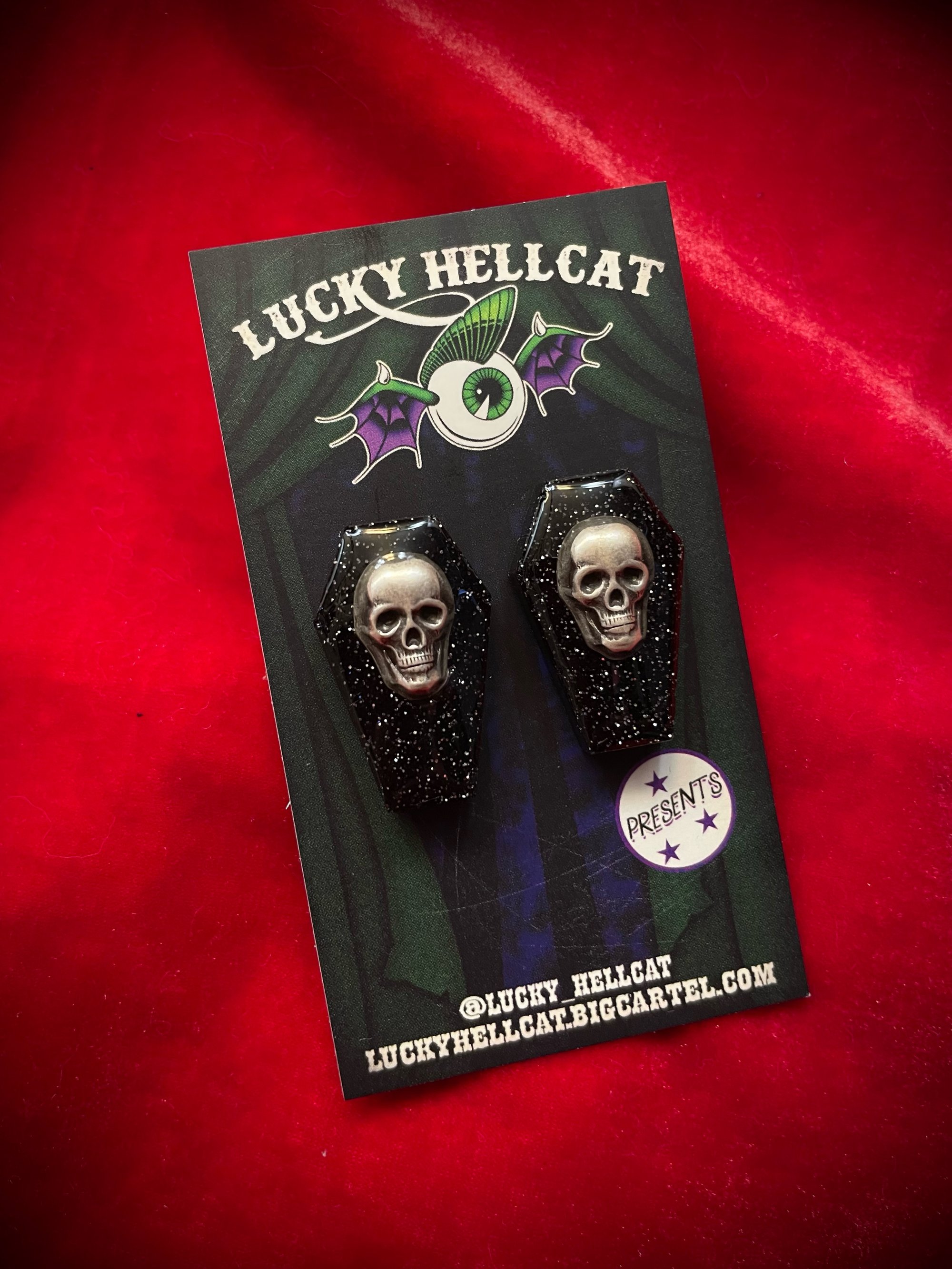 Large Coffin ⚰️ Earrings with metal skull 💀 🖤