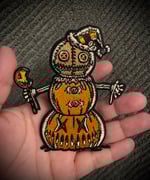 Snow Sam Iron on Patch Measures 4" tall 3.5" wide.